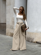 Deze wijde pijpenbroeken zijn gemaakt van een hoogwaardige stof voor een flatterende val en een perfecte pasvorm. Het eenvoudige, effen kleurendesign maakt eindeloze stylingmogelijkheden mogelijk, waardoor ze ideaal zijn voor zowel casual als formele gelegenheden. Draag ze naar het werk, uit eten of op een weekendje weg.