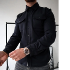 Het zwart heren overhemdjasje met nette pasvorm – Levi is ontworpen voor de man die moeiteloos wil schakelen tussen casual en chic. Dankzij het strakke silhouet en de hoogwaardige afwerking is dit een kledingstuk dat zowel als overhemd én jasje gedragen kan worden. Een slimme toevoeging aan elke garderobe.