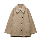 Voeg een vleugje retro charme toe aan je wintergarderobe met deze elegante dames winterjas. Deze jas combineert moeiteloos een vintage look met moderne details. De schuine knopenrij, klassieke omvouwkraag en losse pasvorm zorgen voor een stijlvolle, comfortabele uitstraling – perfect voor koude dagen in de stad of onderweg.
